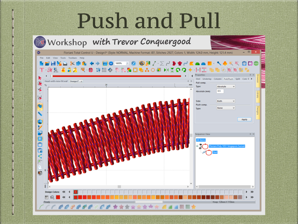 Push and Pull are two different forces that affect how our designs will stitch out. You can easily compensate for the ill effects of push and pull with the settings in the properties box once you learn how they work.